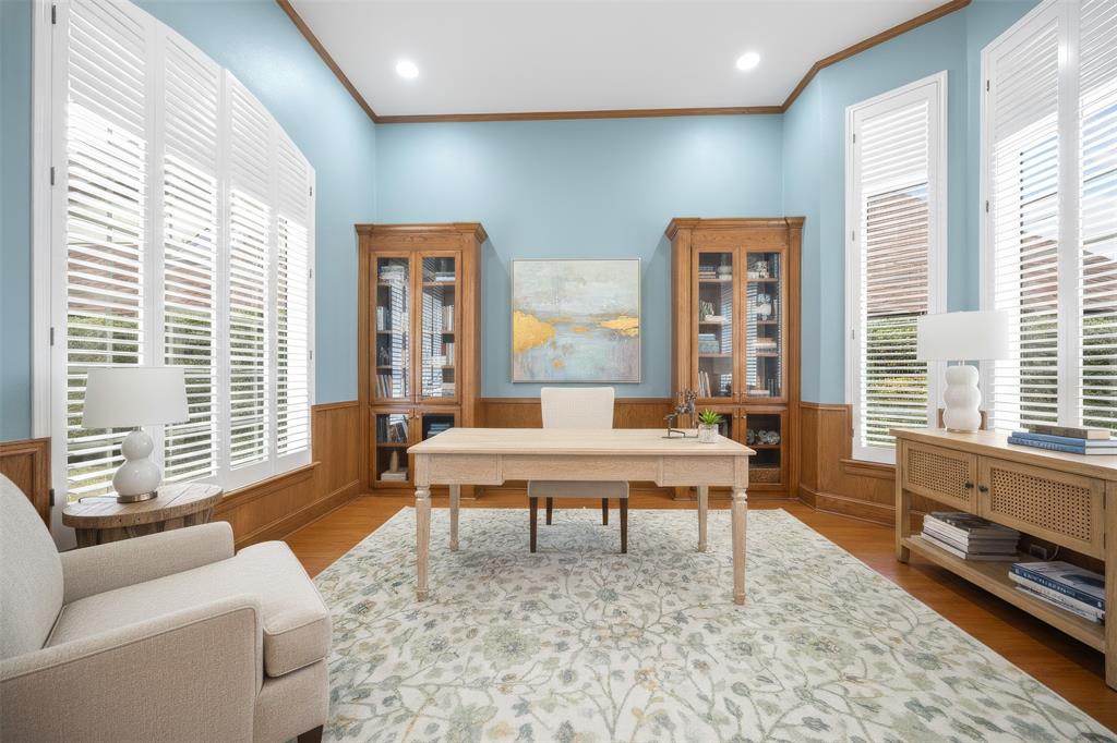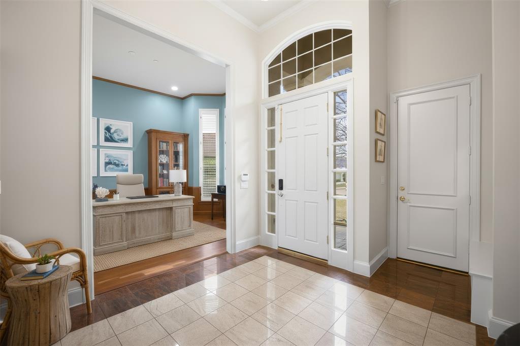A rare single-story custom home by Sharif Munir, honoring the timeless influence of Caperton Johnson, tucked at the end of a quiet cul-de-sac in the heart of Addison. With soaring 14-foot ceilings, marble floors, and abundant natural light, the home lives with architectural presence yet effortless comfort. The open kitchen, breakfast, and living areas feature 12-foot ceilings and expansive windows with wood shutters. The updated kitchen offers white cabinetry, Cambria quartz countertops, deep blue tile backsplash, generous prep space, and a gas cooktop discreetly positioned in the walk-in pantry. Designed for flexibility, the floor plan includes a private office, formal dining with butler’s pantry, and a guest suite with ensuite bath and walk-in closet. The dining room could easily convert to a third bedroom, creating additional value for those needing more space. The expansive primary suite offers a bay window sitting area and secure safe-room-tornado closet. The 2017-updated bath features separate vanities, Kohler soaking tub, walk-in shower, and custom closet with built-ins and skylight. Outdoor spaces are thoughtfully balanced: a private side yard with dedicated dog run, plus a perfectly sized main yard that offers green space without high maintenance, rare for this area and ideal for lock-and-leave living. Additional highlights include an atrium, full utility room, exterior storage, 22kW whole-home generator, and new roof and exterior paint (2026). Residents enjoy access to the Addison Athletic Club for only $10, featuring indoor and outdoor pools, pickleball, basketball, and more. Ideally located just 20 minutes to Legacy West, 26 minutes to Downtown Dallas, 24 minutes to Love Field, and 30 minutes to DFW. Only two owners. Thoughtfully maintained. Centrally positioned.