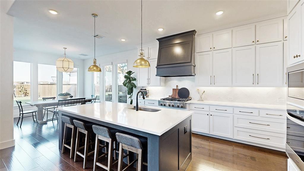 Immaculately crafted 2-story in Light Farms situated on a premium interior homesite backing to green space! Built by Tradition homes in 2023, this stunning home offers 4 bedrooms with private baths and walk-in closets, 2 half baths, a dedicated study space with French doors, formal dining area that makes a terrific living space, upstairs game and media rooms, and 3-car tandem garage! Second bedroom on the first level is perfect for guests or in-laws! Upgrades and amenities include rich hardwood flooring throughout main living areas, spacious family room with 2-story ceilings and a floor-to-ceiling fireplace, upgraded lighting fixtures throughout, large upstairs storage space with added windows that can be converted into an additional room or flex space, shutters throughout, pre-wiring for speakers and cameras throughout entire home and back patio, full home water filtration and softener system, and MORE! Spacious kitchen boasts quartz countertops with a subway tile backsplash, an abundance of bright white cabinetry with gold hardware, island with breakfast bar, stainless appliances including a 6-burner gas cooktop, and eat-in area. Primary retreat secluded at the rear of the home offers a luxurious bath with dual vanities, free-standing tub, frameless shower, and large walk-in closet with convenient utility access! Two large bedrooms with ensuite baths, an open game room, and media room round out the second level. Private backyard is perfect for entertaining! Enjoy an upgraded high traffic but low maintenance turf ideal for kids and pets, an expansive patio area, and fire pit perfect for family s'mores nights! Come experience all that Light Farms has to offer! From fantastic amenities including pools, playgrounds and activity courts, to a fitness center and miles of trails, PLUS endless community-wide events, Light Farms has something for everyone to enjoy!